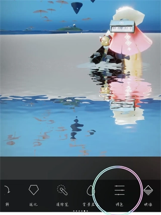 4、实现水面倒影效果,可依据实际情况对模糊、调色、样式等参数进行设置,设置完成后点击对勾确认即可。