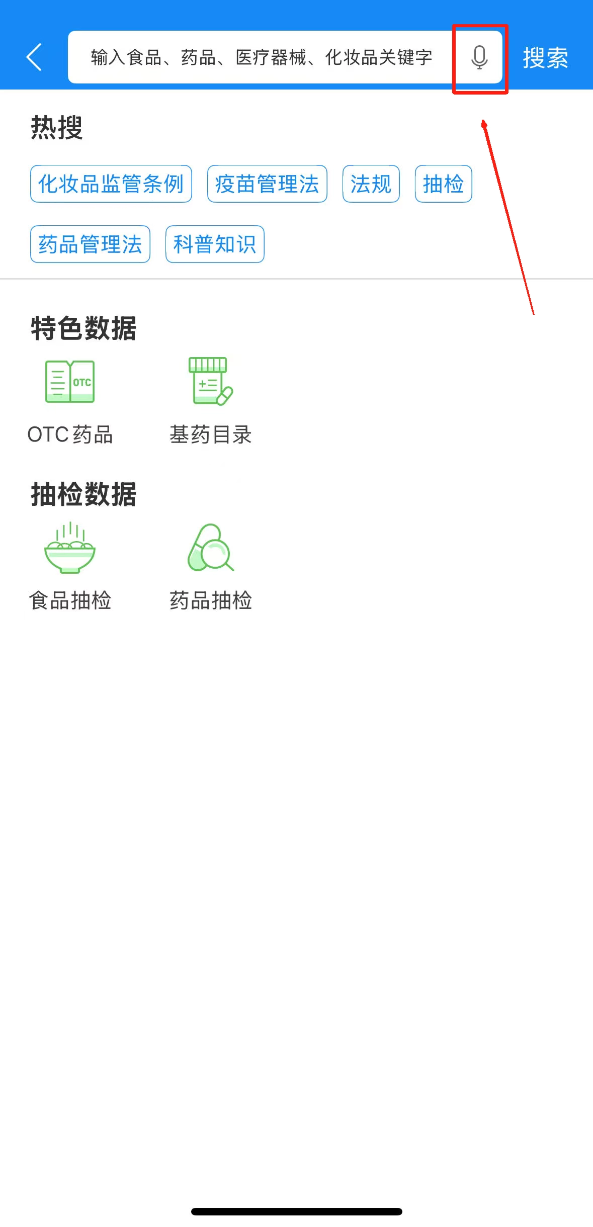 2、长按语音按钮并说出药品名称,系统会智能匹配对应的说明书以及生产企业相关资料。