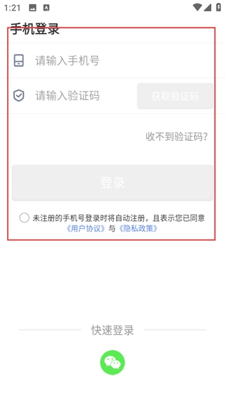 2、进入个人中心页面后,点击未登录的区域,即可跳转至手机登录页面。