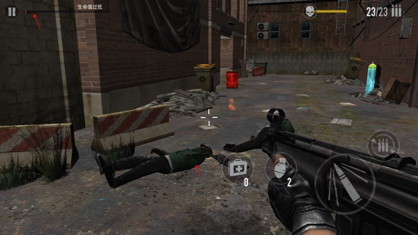 4、进行狙击时,要时刻留意左上角的生命值显示。一旦生命值偏低,就得赶紧用医药箱恢复状态,避免被僵尸打倒。