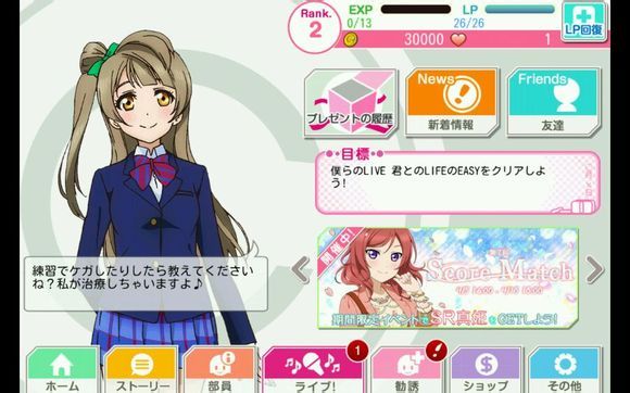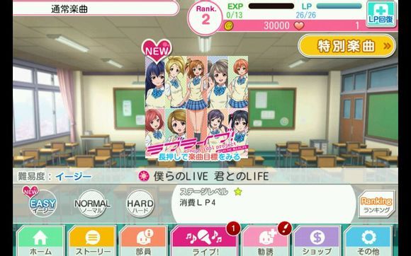 Lovelive校园偶像祭中出现的歌曲都是由偶像声优组合μ’s演唱的,每个月都会更新新的歌曲和新的套卡,还会定期举办可以免费获得高稀有度卡牌的活动。游戏共包含两大模式,即使用μ's所唱歌曲进行节奏游戏的“演唱会模式”,和全语音的“剧情模式”。随着剧情模式的进行,在演唱会模式下可以挑战的歌曲也会增加,同时演唱会模式还有在线排行榜功能,可以和全日本的玩家一较高下!另外作为手机课金游戏,《LOVELIVE!校园偶像祭典》自然也会有卡片系统。每次挑战节奏游戏时,都需要将9张偶像卡片按照喜欢的方式进行排列,这决定了偶像们在舞台上的站位,考虑到角色特性和歌曲属性的站位会让节奏游戏会变得简单。节奏游戏完成后偶像们的能力会得到成长。
