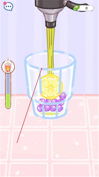 4、倒入饮品并添加柠檬等辅料,完成小吃制作,推进关卡进度。
