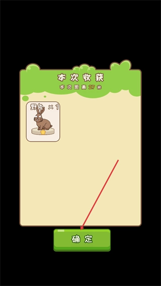 2、在本次收获界面中,确认获得野兔×1后,点击下方的确定按钮,完成本次收获的结算并进入后续环节。