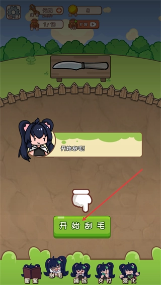 3、看到界面的开始刮毛提示后,点击下方的开始刮毛按钮,即可进入对捕获动物的刮毛操作环节。
