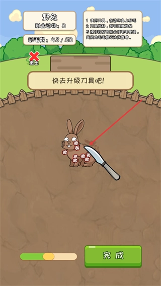 4、刮毛时需控制操作速度避免毛发受损,看到快去升级刀具吧提示后,可升级刀具来提升刮毛的效率与效果。