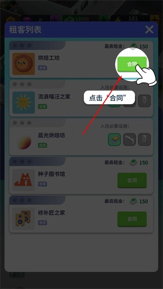 1、进入租客列表页面,找到目标租客对应的合同按钮,点击该按钮,打开租赁合同界面。
