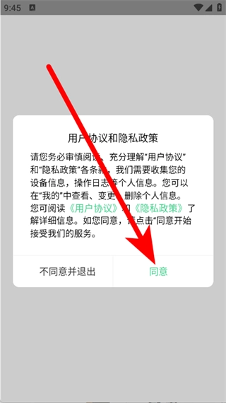 1、打开临安e行应用,在弹出的用户协议与隐私政策窗口中点击同意按钮。