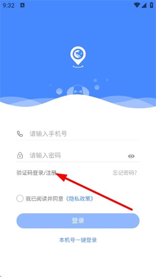 1、在登录页面,点击验证码登录/注册选项,即可进入登录/注册页面。