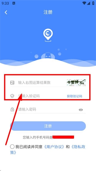 3、接下来我们能够在注册页面,填写运算结果数与短信验证码。