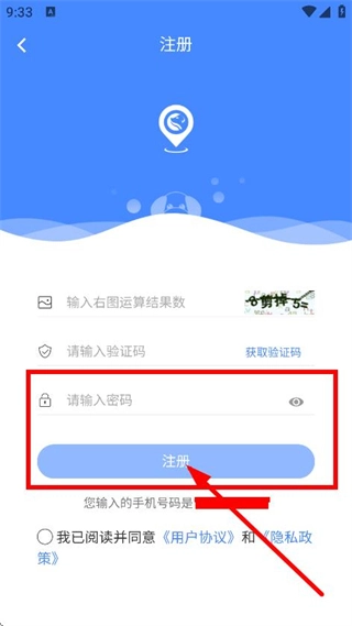 4、进入注册页面后,先设置好密码,接着点击注册按钮,即可完成账号注册的操作。