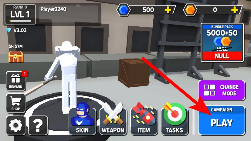 1、在游戏主界面,点击PLAY按钮,进入战斗模式页面。