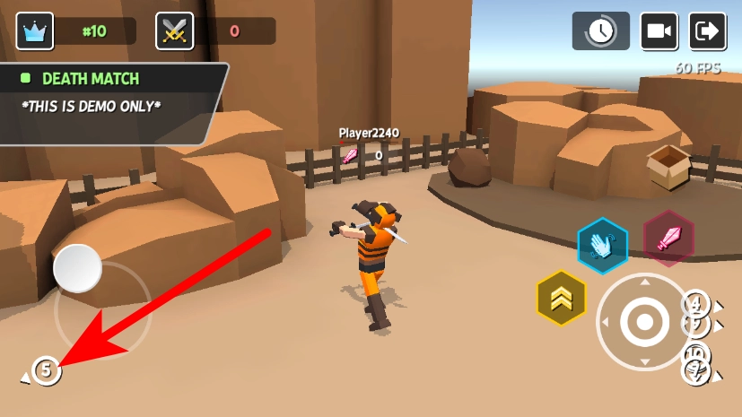 2、在战斗界面,用左侧按键移动角色,右侧按键瞄准攻击目标。