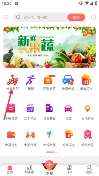 1、打开首页后,点击【外卖首页】图标,即可进入外卖功能页面。