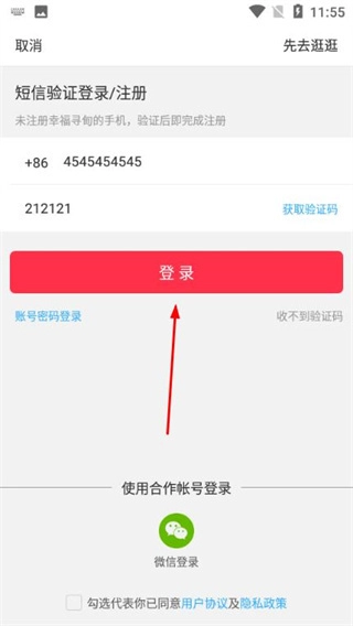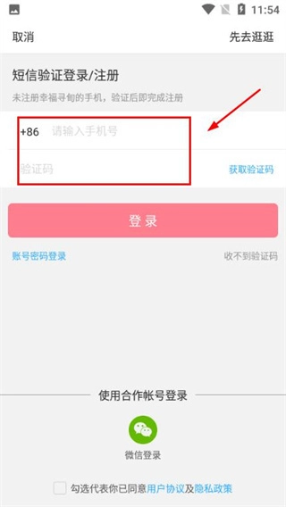 3、输入手机号码和验证码。