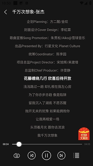 动态专辑封面设计:采用高精度专辑图片,并以高斯模糊效果作为背景;播放界面能够依据音乐风格,自动切换对应的色彩主题。