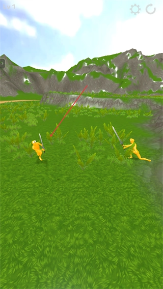 1、在Lv1的草地场景中,通过指引调整角色移动方向,操控持剑布偶靠近敌对目标,同步发起长剑攻击,完成基础的攻防互动。