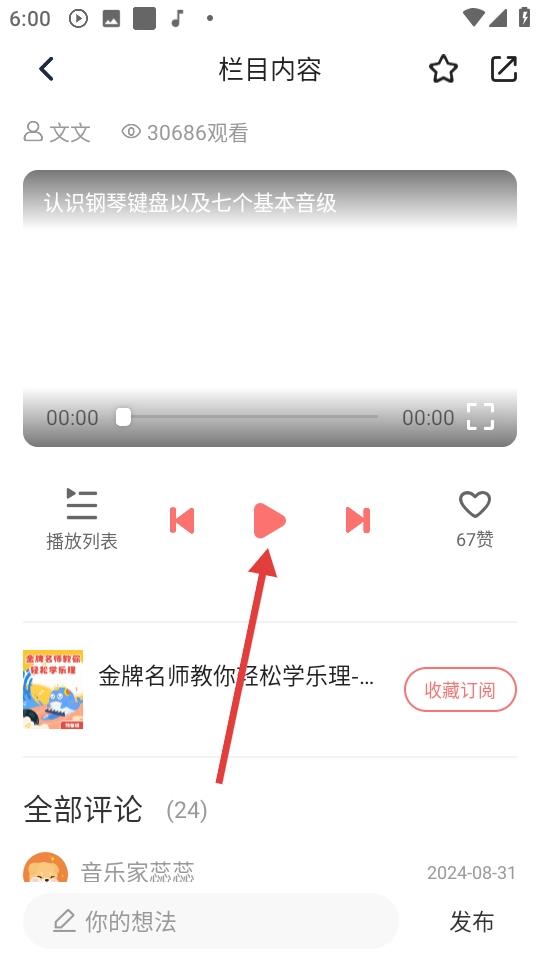4、在栏目内容页,点击播放键可开始观看课程内容。