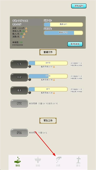从每日收入11的乞丐,逐步解锁每日收入20的渔夫、更高收入的矿工,每一次职业进阶都能看到收入的提升,逆袭的成就感清晰且即时,获得改写命运的情感满足。
