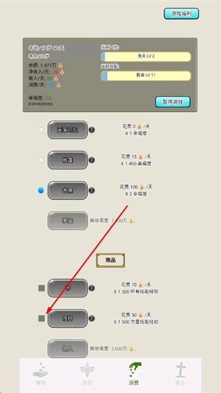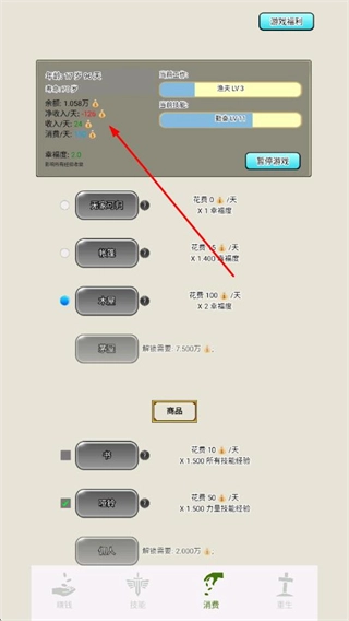 技能与职业收益存在直接关联,勤劳会对所有职业的收入效率产生影响,力量与军队工作的收益加成相对应,技能等级则决定了职业的收入上限;通过消费解锁的商品能够直接提高技能经验。