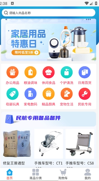 2、在主页就能看到各类商品分类,也能使用搜索功能,精准查找所需商品。