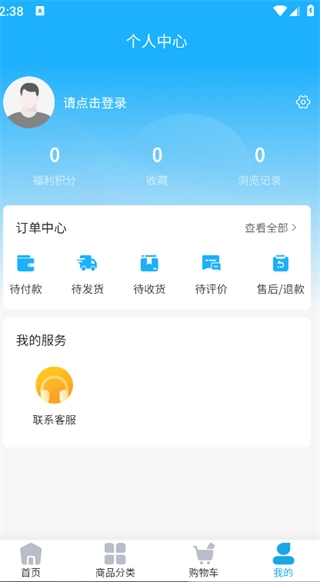 4、点击页面底部的“我的”按钮,就能登录账号,查看订单中心等相关功能。