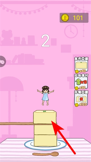 核心玩法围绕落点精准度展开,只有落在平台中心才能获得更高分数,考验玩家的时机把控能力与反应速度。
