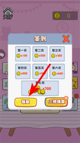 1、在签到界面点击领取按钮,获取当日对应的金币奖励如第七天700金币,积累游戏货币。