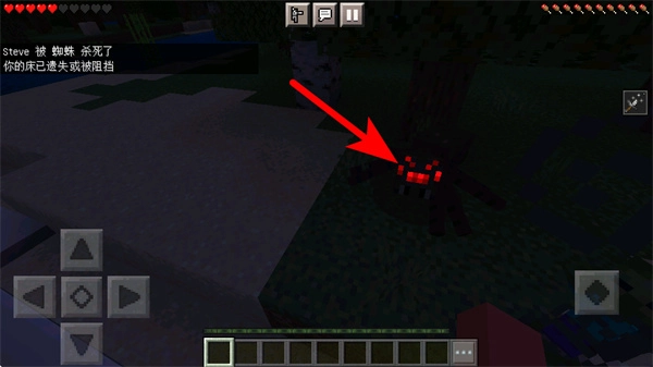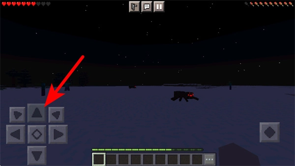 2、进入游戏后,用左侧的方向按钮的前进键操控角色移动,调整位置来探索场景、躲避夜间出现的怪物。