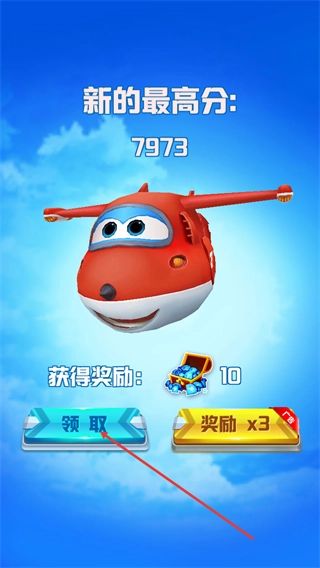4、此为关卡结算界面,界面上呈现出新的最高分以及对应的奖励,点击领取按钮就能获得该奖励,随后返回游戏主页。