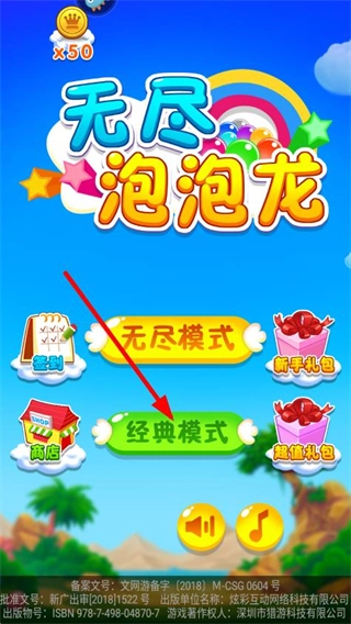 2、在主界面点击经典模式按钮,进入关卡制的泡泡消除挑战。