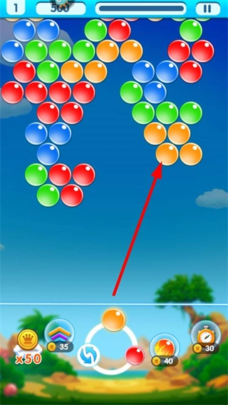 3、将当前泡泡发射到同色泡泡区域,获取分数并推进关卡。