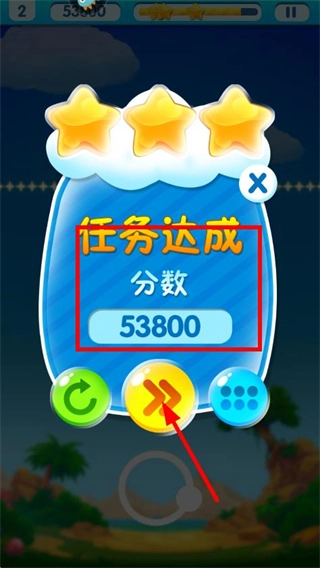 4、完成关卡目标后,点击下方箭头按钮,进入下一个消除关卡。