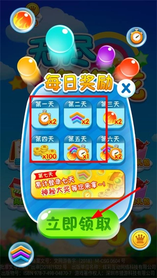 1、在登录奖励界面点击立即领取按钮,获取道具等每日福利。