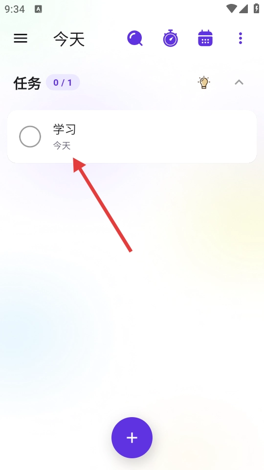 4、填写完成后,可在主界面查看已添加的任务(如【学习】),并进行任务管理操作。