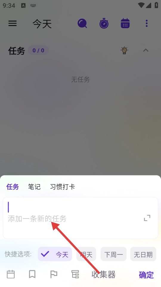进入主界面后,点击底部紫色的【+】按钮,即可展开任务添加界面。