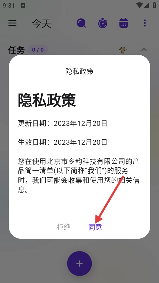 首次使用时,需点击【同意】隐私政策提示,方可进入软件。
