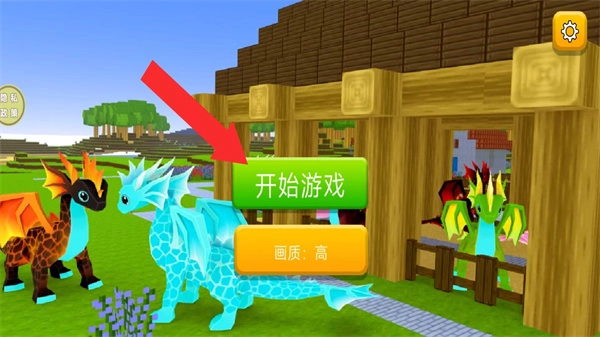 1、进入游戏主界面后,点击开始游戏按钮,就能进入龙主题的创造场景,开启方块搭建的玩法流程。