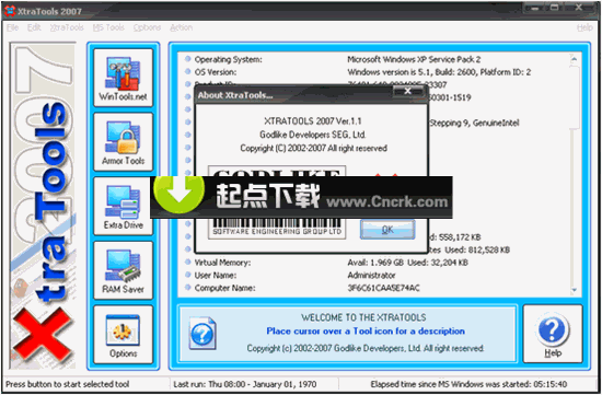 XtraTools.2007是一款拥有超过20个独立系统工具的应用软件,可以使你在系统中工作更加简单高效. Code:1113908752663JI748957E897