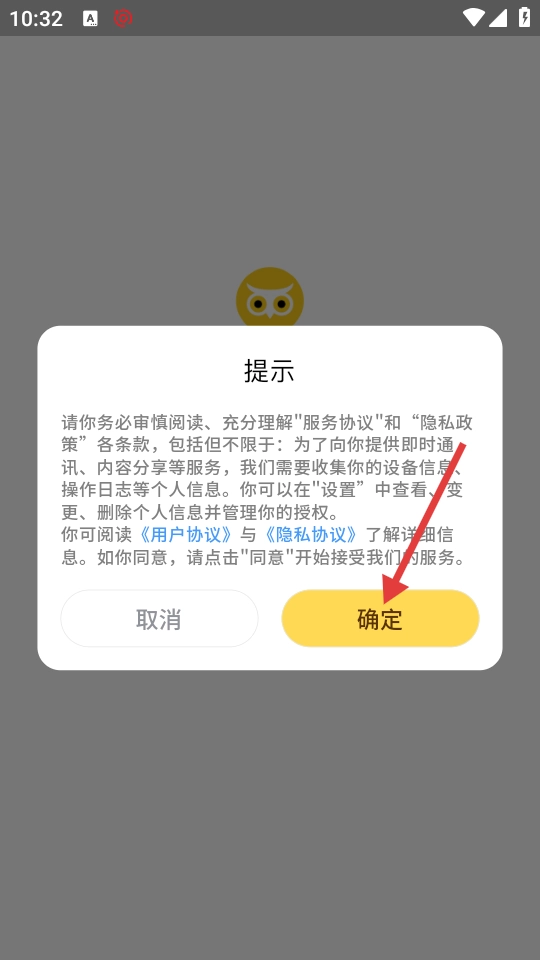 1、在提示弹窗中点击【确定】,进入应用主界面。
