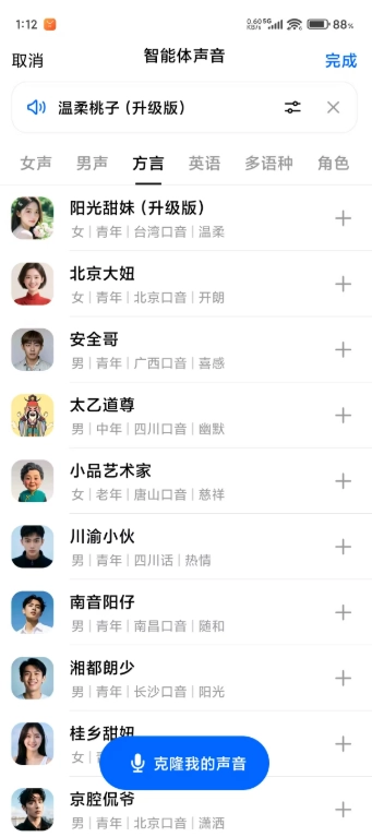 7.你可以自由选择想用的方言开始使用,这样双方就能进行方言聊天了。