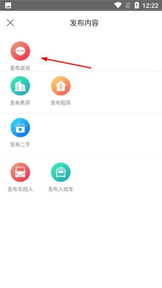 2、在发布内容选择页面,点击【发布说说】。