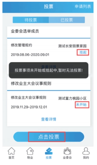 2、仅处于投票中状态的事项支持投票操作,若事项包含挂起或未开始状态的数据,则无法开展投票