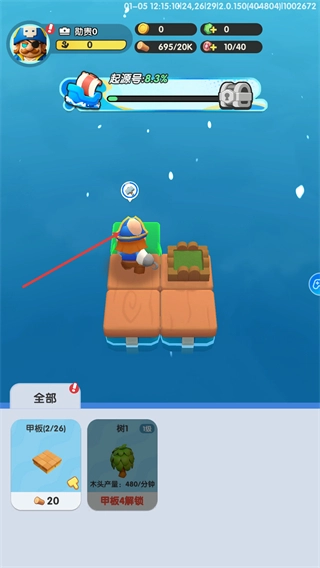3、建造需要一定的时间,等待角色完成甲板建筑后,即可解锁树建筑,它能提供每分钟480的木头产量,助力资源获取。