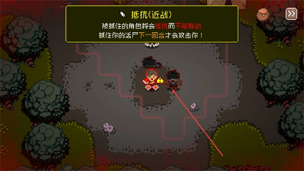 2、触发抵抗近战机制时,被抓角色无法移动,需留意抓你的丧尸下回合才会攻击,提前做好应对准备。