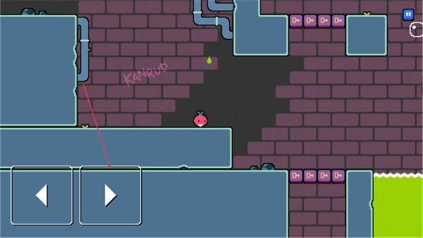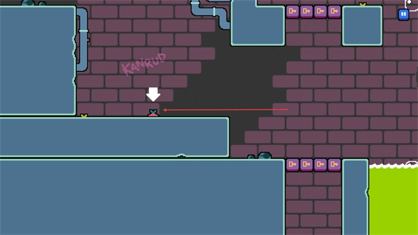 3、继续向右移动角色,收集紫色道具,靠近出口区域,推进关卡。