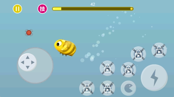 2、通关吞噬食物可以积累能量,积攒满能量后就能进化,蜜蜂可以获得更多特殊能力。