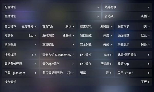 1、在本站安装龙潭影视,进入首页,可以看到一些配置地址、直播地址的设置