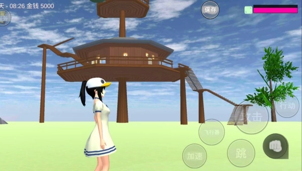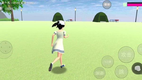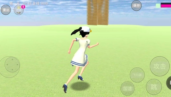 2、滑动屏幕控制学姐奔跑、跳跃,点击飞行器可飞行探索,穿梭校园各区域发现隐藏内容。