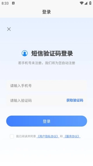1、进入到平台的登录界面,输入手机号,验证码进行登录,方便进入平台。