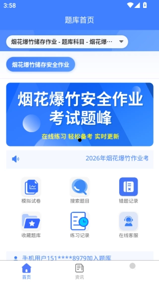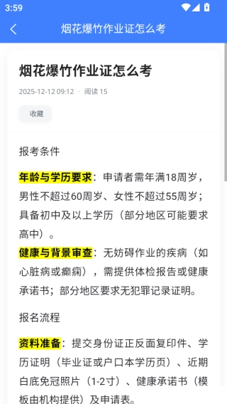 2、资讯中心,及时推送烟花爆竹作业证报名流程、考试政策等重要信息,让用户随时掌握考试动态。